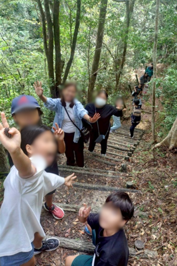 当日は、県民の森での山歩きやバーベキュー、ホテルでのハーリー船体験など、自然や海に触れる多様なプログラムを実施しました。3世帯11名が参加し、1歳から14歳までの子どもたちが、それぞれのペースで体験に向き合う姿が見られました。